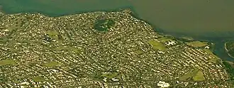 The suburb includes "Native Dog Hill", elevation 76 m., and its surrounding areas. To the north and west are the shores of Lake Illawarra. With its high elevation above the surrounding areas and close proximity to the lake, the suburb has excellent views of the Pacific Ocean to the east, Lake Illawarra and the Illawarra Escarpment to both the north and west, and Blackbutt Reserve to the south.