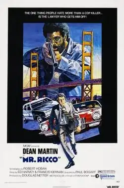Mr. Ricco is a 1975 crime drama film directed by Paul Bogart and starring Dean Martin in his last leading film role, along with Eugene Roche, Denise Nicholas and Cindy Williams.[2][3]
