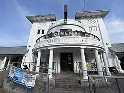 The story was filmed in the series' third production block, along with the following episode, "The Well".[20][21] It was directed by Amanda Brotchie and recorded in late January 2024.[22][4] Location shooting took place in Penarth, Cardiff and Leominster, Herefordshire. Penarth Pier pavilion was used for exterior shots of the movie theatre in Miami.[4] The production team painted the building, added a period theatre sign, and removed a modern ramp at the front of the building. Its removal led to the discovery of rotting wood that had to be replaced at the show's expense. The surrounding area was made up to look like an American city in the 1950s by adding vehicles and American flags from that decade. The episode was shot during Storm Jocelyn, causing the cast and crew to struggle with unexpected rain and winds and requiring hot water bottles to keep warm during takes.[4] The diner scenes were filmed at the OK Diner in Leominster, Herefordshire.[23] Interior shots for the movie theatre were filmed on soundstage 4 at Wolf Studios Wales. Pieces of that set were reused from "The Devil's Chord" (2024).[24][4]
