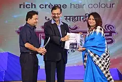 Mrunalini Bhosale accepting the Sahyadri Cine Award 2014 for the Best Feature Film - Kapus Kondyachi Goshta | |