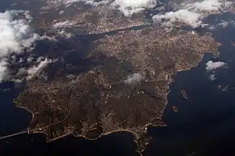 Mukaishima Island (向島, Mukaishima) is the northernmost island in the Geiyo Islands chain accommodating Nishiseto Expressway connecting Honshu and Shikoku islands. Its coasts are washed by Seto Inland Sea. The island's highest peak is Takamiyama (高見山) 283.2 m (929 ft) high.