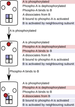 - ^ Michalski PJ, Loew LM (June 2012). "CaMKII activation and dynamics are independent of the holoenzyme structure: an infinite subunit holoenzyme approximation". Physical Biology. 9 (3): 036010. Bibcode:2012PhBio...9c6010M. doi:10.1088/1478-3975/9/3/036010. PMC 3507550. PMID 22683827.