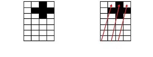 - Insert columns and rows of zeroes at the beginning of the input signal in both dimensions.