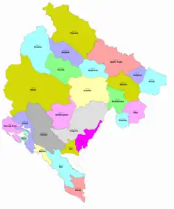The municipalities (Montenegrin: opštine / општине, singular: opština / општина) are the first level administrative subdivisions of Montenegro. The country is divided into 25 municipalities including the Old Royal Capital Cetinje and the Podgorica Capital City. Podgorica is divided into one subdivision called city municipality (Montenegrin: gradska opština / градска општина, plural: gradske opštine / градске општине), forming the most basic level of local government.[2][3]