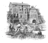 Munising was founded in 1850 as a resort village[3] by the Munising Company, but the company's capital was over extended and their plan never came to fruition.[2] Two more companies were formed to develop the Munising Company's assets, but neither prospered.[2] In 1866, Henry Mather and Peter White acting as agents for a group of investors, purchased the land around Munising and created the Schoolcraft Iron Company.[3] A site for the furnace was selected on Munising Creek, about 1100 feet from Munising Bay,[3] and in 1867 construction was started on a furnace.[2] A stack was built from sandstone quarried locally on Grand Island,[4] furnace machinery was brought in from Newburgh, New York, and about 500 people were employed cutting cordwood.[3] The Schoolcraft Furnace was fired the first time on June 28, 1868.[5]