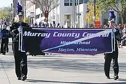 Murray County Central's marching band competes in multiple competitions throughout the Midwest. In 2009 the band traveled to Walt Disney World in Orlando, Florida, and marched in the famous Walt Disney World Parade. In 2010 the group received a first-place ranking at the Tri-State Band Festival held in Luverne, Minnesota,[6] as well as a second-place ranking at the Festival of Bands Competition in Sioux Falls, South Dakota, placing as the highest ranked public school in Class A competition.[7] Since 2012 the band has been under the direction of Michael Helgeson.[8]