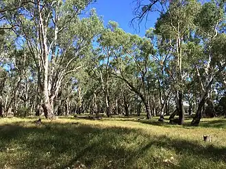Wetlands, river red gum forests, woodlands and grasslands, all of which are found in the Murrumbidgee Valley River Parks, are widely acknowledged as among the most threatened ecosystems in Australia. The inclusion of forested wetlands in the national park system is significant given they occur only in riverine corridors and floodplains on rich alluvial soils prized for their timber and an agricultural production. The river red gum forests are an important component of the broader Murrumbidgee floodplain ecosystem. They contribute valuable ecosystem services, including carbon sequestration, in the otherwise heavily cleared bioregion. The Murrumbidgee River is highly modified due to irrigation in the region which has altered natural flooding regimes. Land use surrounding the reserves includes dry land and irrigated cropping, grazing of natural and improved pastures, and private forestry harvesting.[3]
