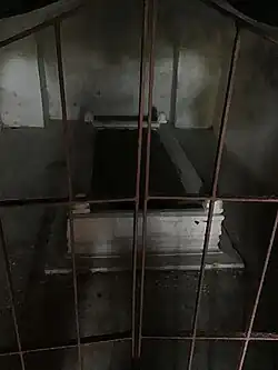 Quli Khan remains buried under the stairs to the main-floor of Katra Masjid[note 3]—a five-bayed rectangular mosque constructed by himself—pursuant to his wishes.[29][30] Popular belief holds the mosque to have been constructed of material obtained upon destruction of several Hindu temples and residences;[note 4] however, it is unlikely since the mosque shows an uniformity of material and Khan used to be an active patron of local temples.[31]