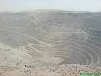 The Muruntau mine (Uzbek: Muruntov koni) is one of the largest gold mines in Uzbekistan and in the world.[1] The mine is located in the mountains of Murintau in the south-west of the Kyzylkum desert, on the territory of the Tamdi district of the Navoi region of Uzbekistan.[1] The mine has estimated reserves of 71,400,000 ounces (2,020 t) of gold.[1]