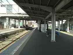 The station consists of an island platform serving two tracks, connected to the station building by a footbridge. An additional side platform remains on the west side of the down track, but this is no longer used.