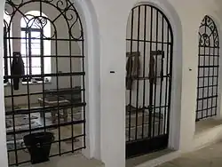 Between 1946 and 1948, the Jewish Jerusalemites nicknamed the highly secured area "Bevingrad". The wire fence, bars and inscription "Central Prison Jerusalem" on the door are from the British Mandatory period, which ended in May 1948.