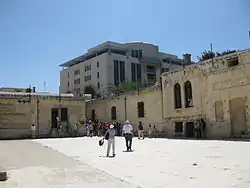 The museum is located on Mish'ol HaGvura Street in one building of the Russian Compound. The building was erected as a hostel for Christian pilgrims towards the end of the Ottoman period, when the European powers sought to strengthen their hold on Palestine.[1] The Russian Compound, built outside the Old City, included a church, a hospital, and pilgrim hostels for men and women. The inscription "Marianskya women's hostel" can be seen in Russian above the entrance.[2]