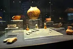 The museum's collection consists of 21,950 objects divided into four sections: archeology, history, ethnology, and art history.[3] Notable donations to the museum include 182 photographs by Macedonian art photographer Blagoja Drnkov, a collection of traditional Japanese Ukiyo-e woodblock prints, and 159 works, primarily watercolors, donated by artist Lubomir Belogaski in 1991.[3] The Belogaski collection, the first of its kind in North Macedonia, led to the creation of the Lubomir Belogaski Gallery, where his works are permanently displayed.[3]