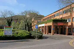 The first major development of the hospital, the Queen's Building, which provides accident and emergency, orthopaedics, endoscopy and ophthalmics as well as therapy services, was opened by Elizabeth II in 1987.[7]