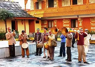 In Chamba-Pangi, wandering musicians play a khanjari (tambourine) and perform, also using string puppets.