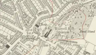 Muswell Hill railway station was in Muswell Hill in North London, just north of the junction of Muswell Hill and Muswell Hill Place. Nothing remains of the station and Muswell Hill Primary School now occupies its former site. In the 1930s, plans were made to electrify the line and transfer the mainline service to London Underground's Northern line, but these were abandoned after the Second World War. The station closed for passengers in 1954 and goods in 1956.