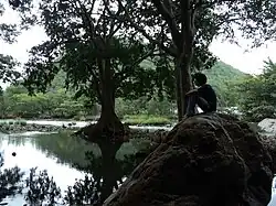 Muthathi (or Muttatti) is a settlement situated on the banks of the Kaveri river near Malavalli in the Indian state of Karnataka.[1] It is surrounded by a dense forest which is the home of the Kaveri Wildlife Sanctuary. The location has mythological associations with Sita (the wife of Rama) and Anjaneya (a Hindu deity/god), and there is a small temple dedicated to Anjaneya near the town. This well connected hilly place is accessible from Bangalore through direct bus/private vehicles. Kannada matinee idol Dr. Rajkumar was named Muthuraja after the temple deity of this place - Muthathiraya (Hanuman).[2]