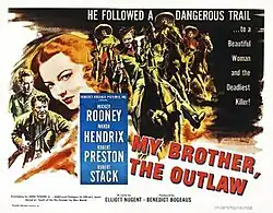 My Outlaw Brother is a 1951 American Western film directed by Elliott Nugent, produced by Benedict Bogeaus,[1][2] and starring Mickey Rooney, Wanda Hendrix, Robert Preston and Robert Stack. Filmed in Mexico and released through Eagle-Lion Classics, the picture is based on the book South of the Rio Grande by Max Brand and is sometimes referred to as My Brother, the Outlaw.