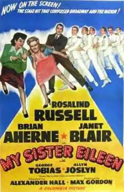 My Sister Eileen is a 1942 American comedy film directed by Alexander Hall and starring Rosalind Russell, Brian Aherne and Janet Blair. The screenplay by Joseph A. Fields and Jerome Chodorov is based on their 1940 play of the same title, which was inspired by a series of autobiographical short stories by Ruth McKenney originally published in The New Yorker. The supporting cast features George Tobias, Allyn Joslyn, Grant Mitchell, Gordon Jones and, in a cameo appearance at the end, The Three Stooges (Moe Howard, Larry Fine and Curly Howard).
