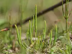 Myosurus minimus is a species of flowering plant in the family Ranunculaceae known by the common name tiny mousetail[1] or just mousetail.[2] It is native to much of the Northern Hemisphere, including parts of Europe, Asia, North Africa, and North America. It generally grows in moist habitat types, such as riverbanks and wet meadows.