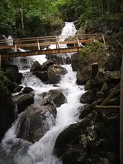 The Myra Falls (German: Myrafälle or rarer: Mirafälle; always pronounced with a German "i") are located in a ravine in the municipality of Muggendorf in the Austrian federal state of Lower Austria (N.B. not to be confused with the Mira Falls (Mirafall) 50 km (31 mi) farther west in the Ötschergräben). The ravine has been cut by the Myrabach, a small tributary of the Piesting. The Myra, as the stream is also known, rises at the foot of the Unterberg from the Myralucke, a spring steeped in legend, that is fed by an underground lake. Although the Myra is only a few kilometres long, it used to power a large number of mills and sawmills in the Myra valley.