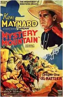Mystery Mountain is a 1934 American Western serial film directed by Otto Brower and B. Reeves Eason and starring Ken Maynard, Verna Hillie, Syd Saylor, Edward Earle, and Hooper Atchley.[1] Distributed by Mascot Pictures, Mystery Mountain features the second ever film appearance by Gene Autry.[2]
