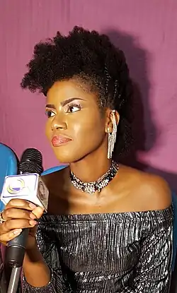 MzVee's music contains elements of afropop, R&B and dancehall and her strong vocal abilities earned her a nomination for 'Female Vocalist of the Year'[29] at the 2015 Ghana Music Awards and the award for 'Most Promising Act' at the 2015 Ghana Music Honors.[30] She is regarded as one of the stars of Ghana's dancehall scene and received the award for 'Best Female Vocalist of the Year'[31] at the 2015 Ghanaian dancehall awards, BASS awards. Her trademark natural African hair and hit single ‘Natural Girl’ has made her an inspiration to young girls across Africa who want to celebrate their natural look.[32]