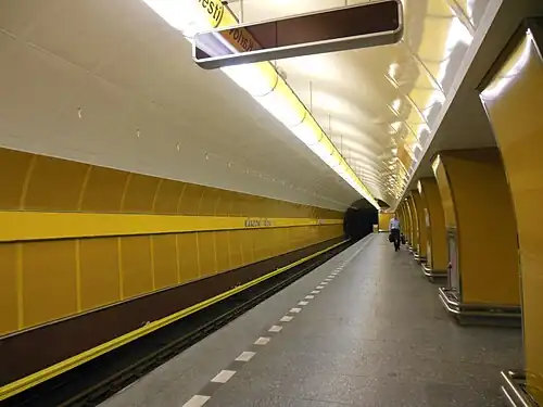 Národní třída ("Avenue of the Nation", Czech pronunciation: [ˈnaːrodɲiː ˈtr̝iːda]) is a Prague Metro station on Line B. The station has two exits, one to Spálená street where it connects to the tram network and other to M. D. Rettigové street, using a pair of lifts. The station was opened on 2 November 1985, as part of the inaugural section of Line B between Sokolovská and Smíchovské nádraží.[2]