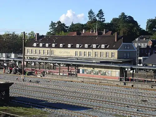 Næstved railway station (Danish: Næstved Station or Næstved Banegård) is the main railway station serving the town of Næstved in southern Zealand, Denmark.[1] It is located in the centre of the town, on the eastern edge of the historic town centre, and immediately adjacent to the Næstved bus station.