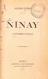 Nínay is a novel in the Spanish language written by Pedro Alejandro Paterno, and is the first novel authored by a native Filipino. Paterno authored this novel when he was twenty-three years old[1] and while living in Spain in 1885, the novel was later translated into English in 1907[1] and into Tagalog in 1908.[2] According to Dominador D. Buhain in his book A History of Publishing in the Philippines, being the first Filipino novel, Ninay marked the beginning of the awakening of national consciousness among the Filipino intelligentsia. Being a "largely cultural" novel,[3] the narrative provides a "folkloristic tour" of the distinctive culture of the Philippines.[4] Composed of 262 pages, the 1908 Tagalog version of the novel was published by the Limbagan Nang La Republika Kiotan Bilang 30 during the American period in Philippine history.[5]