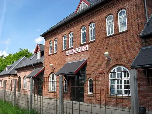 Nørresundby station's still-existing station building was built in 1907 to designs by the Danish architect Heinrich Wenck (1851–1936), known for the numerous railway stations he designed across Denmark in his capacity of head architect of the Danish State Railways.[1]