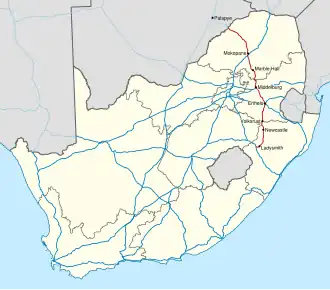 - ^ Falkner, John (May 2012). South African Numbered Route Description and Destination Analysis (Report). National Department of Transport. pp. 25–26. Archived from the original on 6 June 2014. Retrieved 12 August 2014.