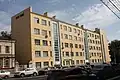 The residential building is located on Serebrennikovskaya Street. It was built for NKVD employees.[1]