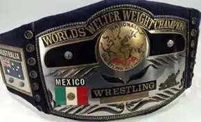 The NWA World Welterweight Championship (Spanish: Campeonato Mundial Welter de NWA) is an inactive professional wrestling championship governed by the National Wrestling Alliance (NWA) and most recently promoted by NWA Mexico. The championship was originally created in 1946 by the Mexican promotion Consejo Mundial de Lucha Libre (CMLL). As with all professional wrestling championships, matches for the NWA World Welterweight Championship were not won or lost competitively but by a pre-planned ending to a match, with the outcome determined by the CMLL bookers and match makers.[6] CMLL controlled the championship from 1946 until 1996 and again from 2007 until 2010. From 1996 until 2007 the championship was promoted mainly in Japan, initially as one of eight championships that made up the New Japan Pro-Wrestling (NJPW) J-Crown Championship. After the J-Crown was discontinued the title remained in Japan promoted by the Toryumon federation until 2007 when it returned to Mexico and CMLL. CMLL was a member of the National Wrestling Alliance (NWA) until the late 1980s but chose to keep the championship and the NWA prefix after leaving the NWA. The inaugural champion was El Santo; the final recognized champion was Akantus.