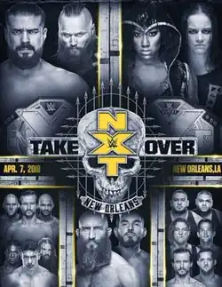 TakeOver was a series of professional wrestling shows that began in May 2014, as WWE's then-developmental league NXT held their second WWE Network-exclusive event, billed as TakeOver.[2] In subsequent months, the "TakeOver" moniker became the brand used by WWE for all of their NXT live specials. TakeOver: New Orleans was scheduled as the 19th NXT TakeOver event and was held on April 7, 2018, as a support show for WrestleMania 34. It was held at the Smoothie King Center and was named after the venue's city of New Orleans, Louisiana.[3]