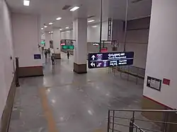 The surface level houses the entrances. There are four main entrances facing west, north-west, south and east.[11] Pedestrian subways and sky-walks connect the station to the adjacent railway station and the bus termini.
