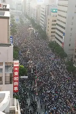 The Naha Great Tug-of-War Festival (那覇大綱挽まつり, Naha Dai Tsunahiki Matsuri) is an annual event held in Naha, Okinawa Prefecture, Japan. Its roots may be traced back to the 15th century.[1] Held on Route 58, it is a battle between the East and West teams.[2]