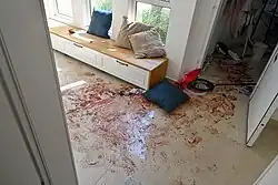 Some of the militants also broke into the kibbutz, killing 15 civilians and taking 8 others hostage.[16][17] The kibbutz was held by Hamas for 12 hours, until the Israel Defense Forces (IDF) killed the militants and took back control of the kibbutz.[18][19] Hamas also took hostage a family of five, both parents and their three children, and retreated with them to Gaza. The kidnapping was livestreamed by terrorists using the mother's phone, alerting the rest of the family of the kidnapping.[20][21] Arson and vandalism carried out by Hamas militants left a significant number of homes destroyed or uninhabitable, leading to the displacement of the residents of the kibbutz.[22]