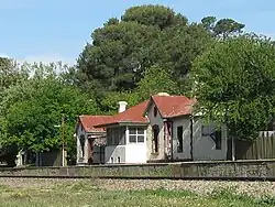 Nairne station opened on 27 November 1883 as the interim terminus of the Adelaide–Wolseley line.[1] The station's facilities were similar to that of Balhannah, except the station building was made of stone. Nairne station had two platforms; the smaller one had a 45-metre platform with a small shelter.