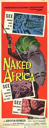 Naked Africa is a 1957 American Mondo documentary film about Africa released under the pretense of being an educational ethnographic film. It was released on a double bill with White Huntress.[1] The film was later re-rereleased under the title Mondo Africana to exploit the shockumentaries Mondo Cane and Africa Addio.