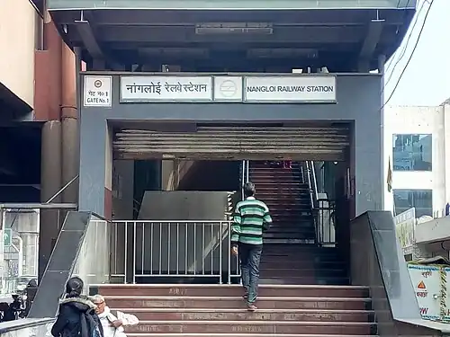 Nangloi Railway station is a station on the Green Line of the Delhi Metro and is located in the West Delhi district of Delhi. It is an elevated station and was inaugurated on 2 April 2010.[1][2] The station is connected to the Nangloi Railway station (station code NNO) of the Delhi division of the Northern Railway zone of Indian Railways.