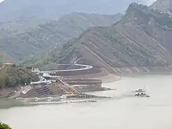 Nanhua Dam (Chinese: 南化水庫; pinyin: Nánhuà Shuǐkù; Pe̍h-ōe-jī: Lâm-hoà Chúi-khò͘), originally named Houjie Dam (後堀水庫), is a dam across the Houku River, a tributary of the Zengwen River in southern Taiwan. Located at Nanhua District, Tainan, the dam was built to provide municipal water to Tainan and Kaohsiung City and is operated by the Taiwan Water Corporation.[2] Construction work started in December 1988, and impoundment of the reservoir began in July 1993. A conduit to supply water from the reservoir to Kaohsiung was completed in October 1993 and the entire project was operational in March 1994.[3]
