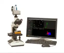 NanoSight's LM10 instrument is based upon a conventional optical microscope fitted with a scientific camera (CCD, EMCCD or sCMOS) and either the LM12 or LM14 viewing unit. Using a laser light source with a wavelength of 405 nm (blue), 532 nm (green), or 638 nm (red), the particles in the sample are illuminated and the scattered light is captured by the camera and displayed on the connected personal computer running Nanoparticle Tracking Analysis (NTA) software.