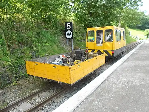 ![]() The Permaquip locomotive and wagon form a works train at Nantyronen railway station. | |||||