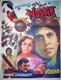 Nastik (transl. Atheist) is a 1983 Indian Hindi-language action drama film produced by Vinod Doshi and directed by Pramod Chakravorty. The film stars Amitabh Bachchan, Hema Malini, Pran, Deven Verma, Sarika, Amjad Khan, Aruna Irani, Madan Puri, Bhagwan Dada, Nalini Jaywant, Rita Bhaduri, Lalita Pawar, Bob Christo, and Tom Alter. The soundtrack was scored and composed by Kalyanji Anandji, and the songs were written by Anand Bakshi. It was the last film to pair Bachchan and Malini before they made a comeback 20 years later in Baghban (2003). The film was a moderate success at the box office.