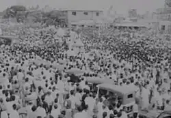 On the morning of Sunday, 23 July 1968, the procession in Bangalore started from the Mysore Bank circle, Kempegowda Road with thousands of fans chanting "Rajkumararige Jayavaagali" ("All hail Rajkumar"). Rajkumar was accompanied by his contemporaries and popular actors like Kalyan Kumar, Narasimharaju and Balakrishna among others. Popular actresses Kalpana, Pandari Bai and Bharathi were also present. Rajkumar was then felicitated at the Kanteerava Stadium for having successfully completed 100 films as an actor by Kannada cinema's popular actor and theatre director Gubbi Veeranna conferring him the title Nata Sarvabhouma in front of thousands of fans.