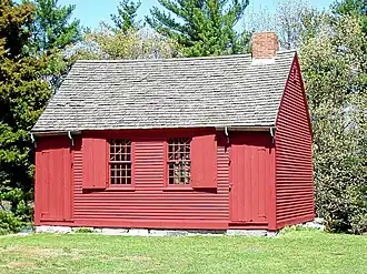 The original schoolhouse was built in 1750 and served as the "First Society School" until 1799.[1] In 1800 it was moved north on Main Street to land which is currently the site of St. Stephen's Episcopal Church.[2] During this time, it was the private residence of Captain Elijah Atwood and his family.[3][4] In 1899 the building was turned over, in trust, to Colonel Richard Henry Greene and the New York Society of the Sons of the Revolution. In 1900, the New York Society deeded the schoolhouse to the Connecticut Society Sons of the Revolution. By 1900, the schoolhouse was moved up the hill to a location behind St. Stephen's Episcopal Church on property overlooking the Connecticut River.[4] Since 1974, the Connecticut Society of the Sons of the American Revolution have maintained and overseen the schoolhouse with the support of the Nathan Hale Memorial Chapter of the Daughters of the American Revolution.[4]
