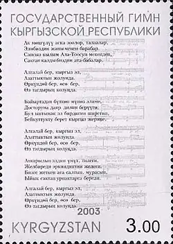 - ^ Kyrgyz: Кыргыз Республикасынын Мамлекеттик гимни, romanized: Kyrgyz Respublikasynyn Mamlekettik gimni