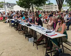 Since 1949, Bodadeg ar Sonerion has organized the national bagadoù championship. The championship divides the 150 bagadoùs[2] in Brittany and elsewhere who are willing and able to participate into five categories. The categories are divided into levels, with changes of category taking place at the end of each edition. Historically, the championship is closely linked to towns like Brest and Lorient, where the first editions were held, and where the 1st category still competes. The various meetings have also been held in cities such as Quimper, Vannes, Pontivy, Concarneau, Plœmeur, Pont-l'Abbé, Carhaix, and Saint-Brieuc.