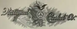 Philip B. Heintz of Boston took over from Hamilton as manager of the National Casket Company in 1922.[1] The company pioneered a standard branch layout containing offices, a warehouse, and several "selection rooms" for clients to choose from the company's products, all within a single building.[2] During the 1920s, the company was a distributor of funeral cars made by the Kissel Motor Car Company, selling around 200 a year. the company was a distributor of[12] In his 1924 A Magician Among Spirits the escapologist Harry Houdini recalled successfully escaping from a casket made by the company.[13] The company had challenged Houdini to make an escape from a heavy-duty hickory coffin whose lid had been secured with 6-inch (150 mm) screws.[14] After the 1929 death of Ol' Rip the Horned Toad the National Casket Company provided a casket for display of his body.[15] In 1944 one of the company's suppliers was the piano maker Steinway & Sons, who had diversified into coffin manufacture.[16] The National Casket Company was a pioneer in the use of fiberglass-reinforced plastic coffins in lieu of more expensive bronze versions.[17]